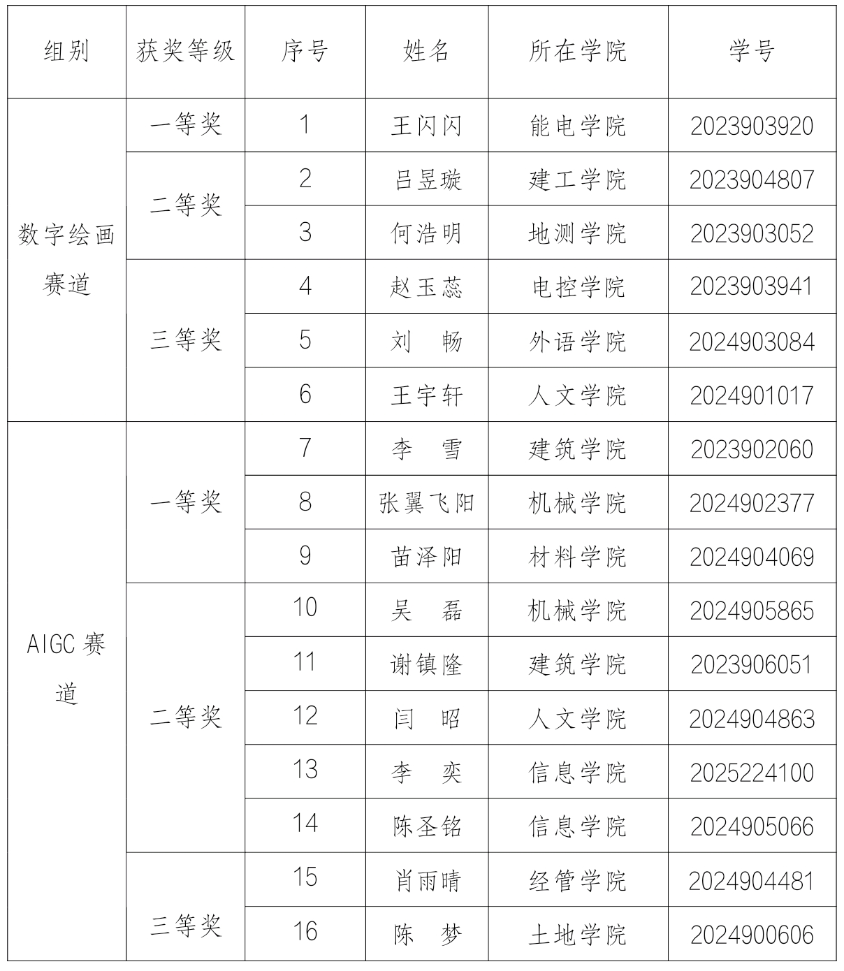 各分团委、团工委、广大同学: 长安大学第二届数字绘画作品大赛由共青团长安大学委员会主办、共青团长安大学人文学院学院委员会承办、长安大学人文学院科技与创新协会协办。在各级领导的悉心指导下和在广大同学的积极参与下,本次活动取得了圆满成功,现将获奖名单公布如下: 长安大学第二届数字绘画作品大赛 共青团长安大学委员会 共青团长安大学人文学院委员会 2026年1月5日