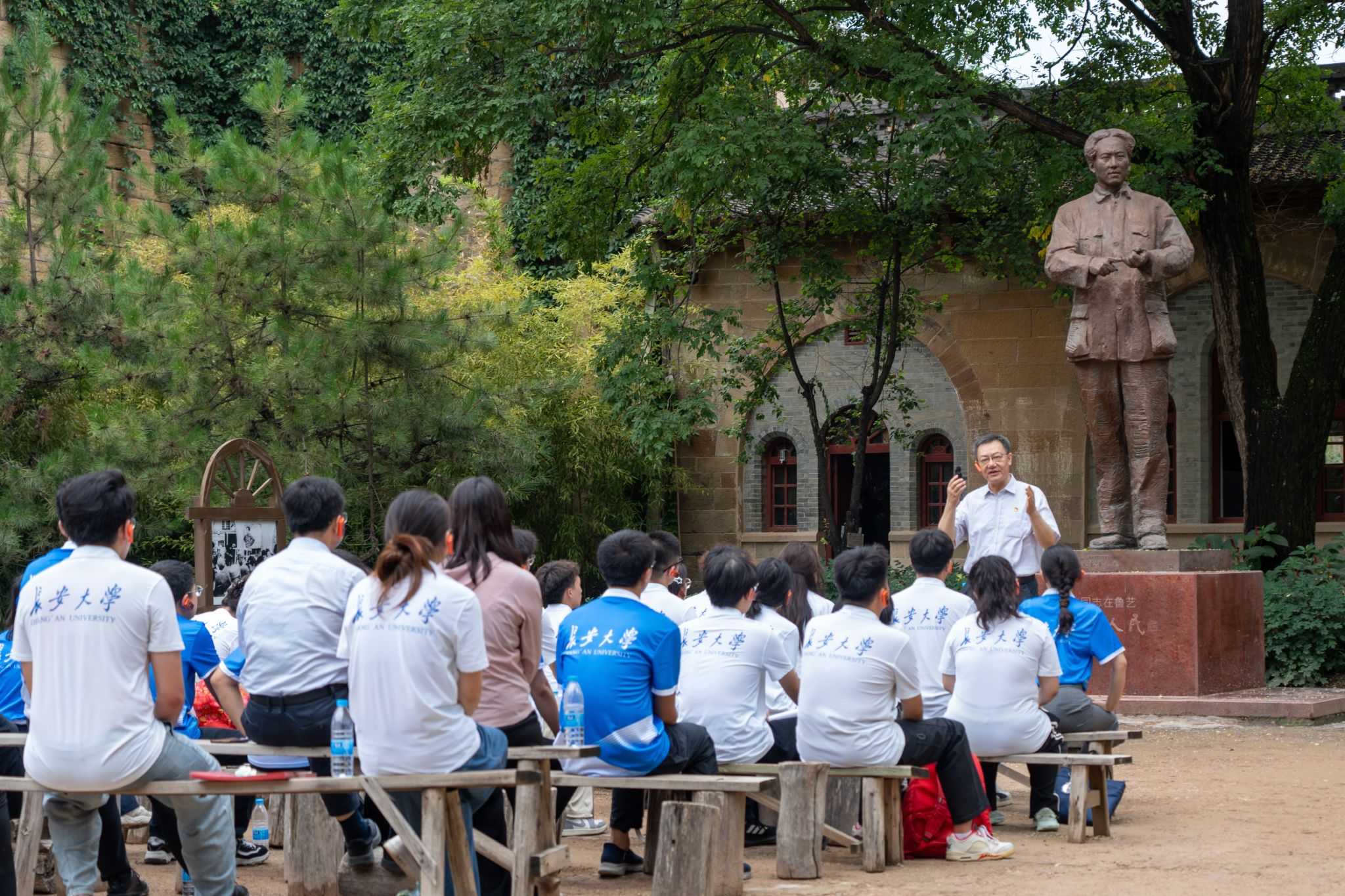 陈志坚在鲁艺旧址为师生讲授行走的思政课。他围绕“青年学生为何要重视学习”“为何要奔赴延安开展学习”“为何选择研学的方式开展学习”三个问题,深情勉励广大学子:要紧跟时代步伐,如饥似渴学习,不断充实自我、提升本领;要深刻把握教育的政治方向,坚定理想信念,做到德才兼备;要在团结协作中锤炼意志,积极发扬昂扬向上的革命乐观主义精神。陈志坚特别强调,实践队员们要当好延安精神的“播种机”和“宣传队”,回到校园后,主动在班级、支部中分享感悟、传播精神,引导全校青年学生从延安精神中汲取强大力量,自觉树立远大理想,勇担时代重任,砥砺奋斗品格,努力争当有理想、敢担当、能吃苦、肯奋斗的新时代好青年,为实现中华民族伟大复兴贡献青春力量。