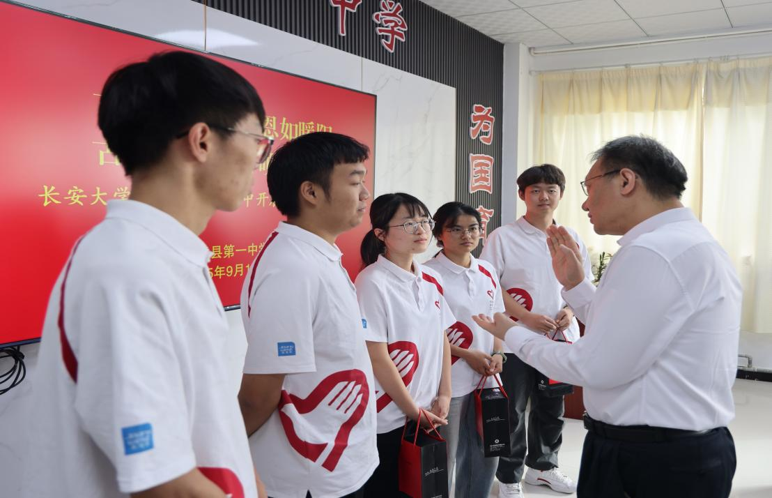 陈志坚实地了解焉耆县第一中学的办学情况和志愿者的学习、工作、生活情况,并与地方和学校就县中托管帮扶工作开展情况进行了深入交流探讨,对选择到西部、到乡村、到基层志愿服务的志愿者所取得的成绩予以充分肯定。他勉励研究生支教团队成员要坚定理想信念,厚植家国情怀,把自己的青春智慧毫无保留地融入到焉耆教育事业发展中,不懈奋斗。他表示,学校将进一步发挥自身优势,在师资培养、教学资源、办学理念等方面为焉耆县第一中学提供支持,助力学校教育教学质量提升。他强调,在教育强国建设的征程上,西部计划支教团志愿者务必要牢记习近平总书记嘱托,坚持践行教育家精神,努力提升自身的思想道德修养和教育教学水平,争做“四有好老师”“四个引路人”,为西部乡村教育事业贡献出自己的青春力量。