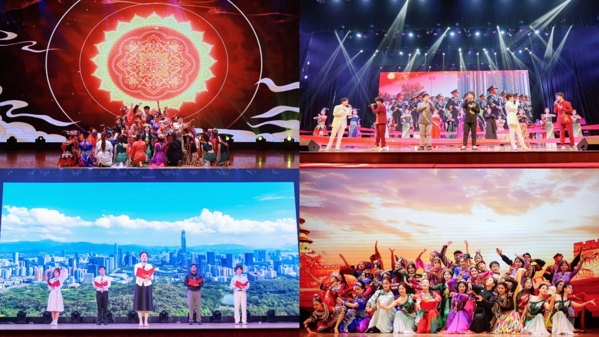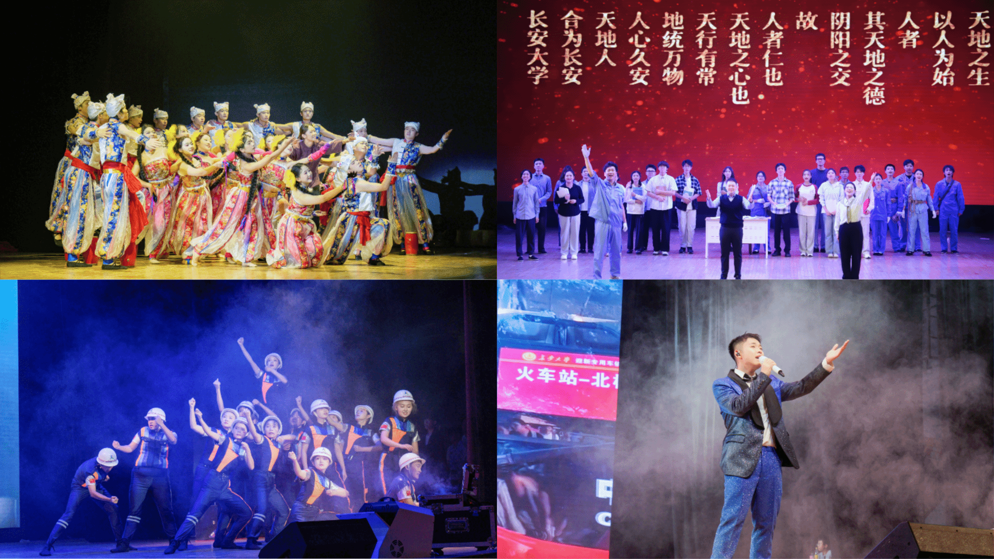 在第三篇章“奋进强国”中,朗诵《我与中国式现代化》表达了长大师生以青春之热血为中国式现代化挺膺担当的豪迈激情;《家园》通过绚丽的民族歌舞,传递学校各民族师生团结友爱的深厚情谊,整个篇章将凝聚青年力量和传递时代担当深度融合,充分体现长大师生与新时代同频共振的奋进姿态。尾声环节,歌曲《致吾辈》以铿锵有力的节奏,唱出新时代长大青年胸怀家国、勇担使命的赤子之心。
