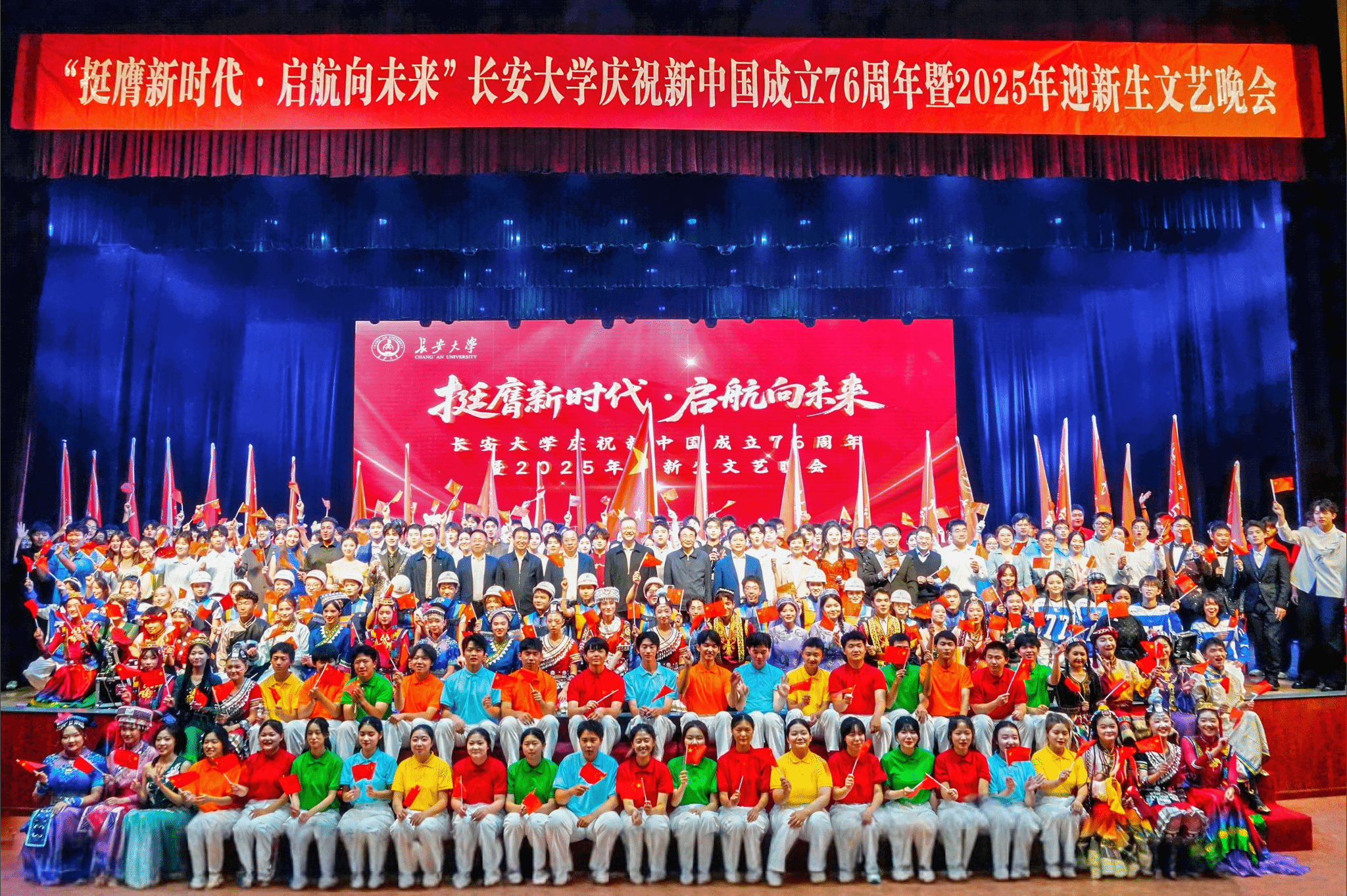 9月28日晚,“挺膺新时代・启航向未来”长安大学庆祝新中国成立76周年暨2025年迎新生文艺晚会在长安文化艺术中心举办。校党委书记陈志坚,校长李树涛,校党委副书记、纪委书记陶继东,校党委副书记李文雄,副校长黎开谊出席晚会。