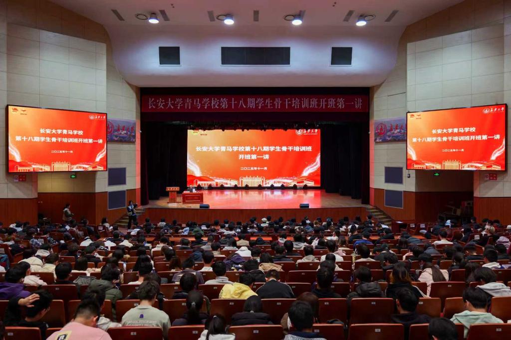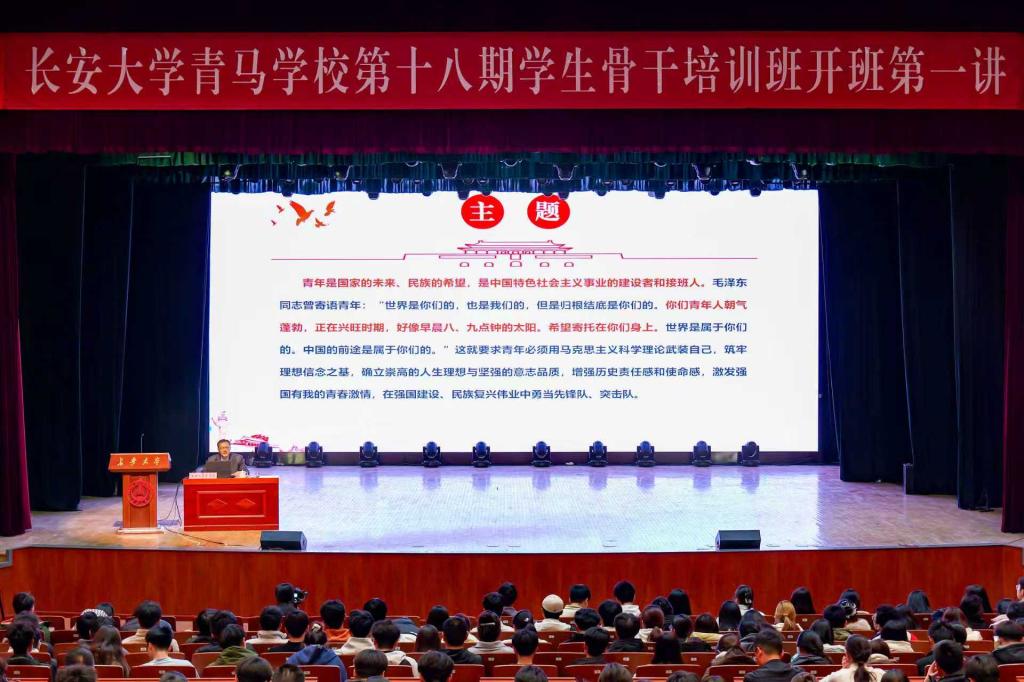 为深入学习贯彻习近平新时代中国特色社会主义思想,全面贯彻党的二十大和二十届历次全会精神,推进我校青年马克思主义者培养工作走深走实,切实提升学生骨干的政治素养与理论水平,11月25日晚,长安大学青马学校第十八期学生骨干培训班开班第一讲在北校区长安文化艺术中心大礼堂举行。校党委书记陈志坚作题为《感悟思想伟力,挺膺时代担当,做新时代坚定的青年马克思主义者》专题报告。校团委书记丁芝娟主持活动。