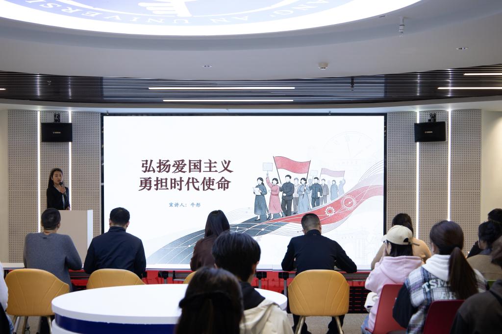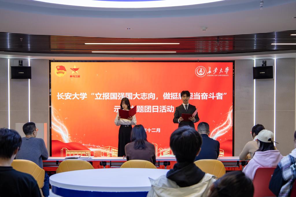 为纪念一二·九运动90周年,传承红色基因、厚植爱国情怀,12月9日下午,长安大学“立报国强国大志向,做挺膺担当奋斗者”示范主题团日活动在北校区长安文化艺术中心二层数字思政展示体验中心举行。活动由校团委副书记林泓宇主持。