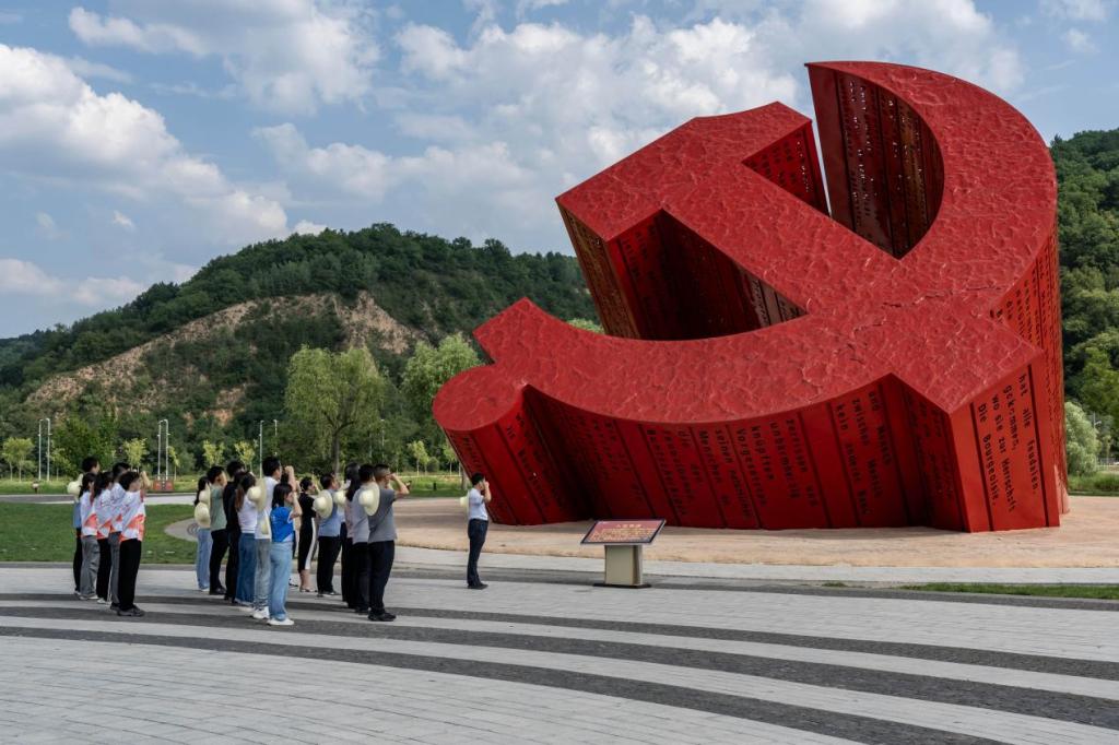 实践队全体党员在南泥湾党徽广场重温入党誓词