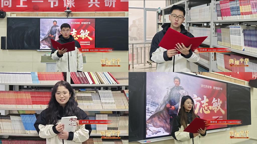 西安场景中,学子立足古都底蕴,在雁塔脚下、长安大学校内诵读经典,生动传递了红色文化的精神力量。在陕西商南,我校第十四届研究生支教团成员联合商南县鹿城中学学生,将红色经典诵读与“大思政课”教学深度融合,通过沉浸式诵读、互动式讲解,让红色基因融入青少年成长血脉,让思政之光照亮乡村教育之路。