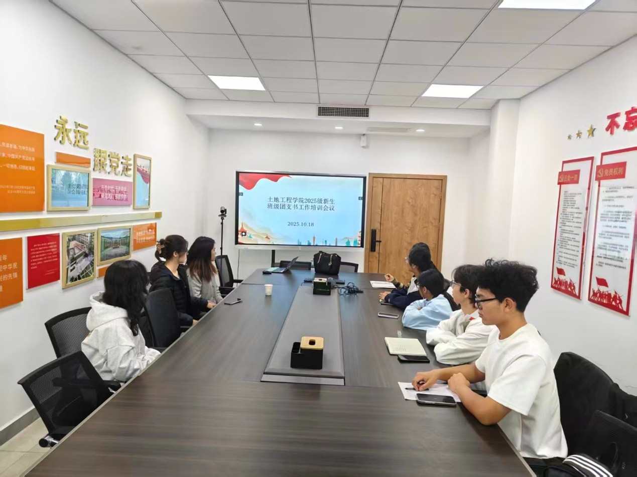 为帮助新生团支部书记尽快熟悉岗位职责,夯实基层团组织工作基础,10月18日,土地工程学院团委于北校区朝晖楼一楼会议室组织开展了2025级新生团支书工作培训。陈杨老师、学院团委相关负责同学及全体2025级新生团支书参加。