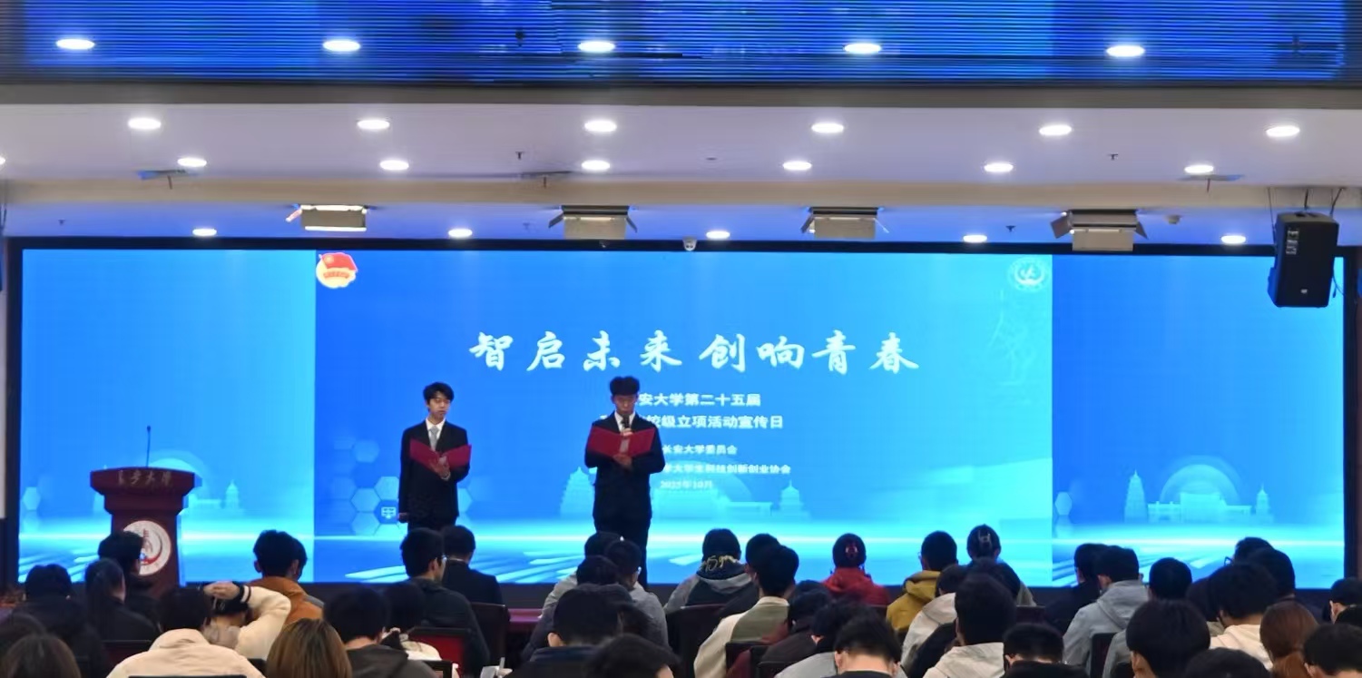 近日,长安大学第二十五届科技节校级立项活动宣传日在长安文化艺术中心三楼多功能厅举办。校院两级大学生科技创新创业协会主席团代表、科技社团主席团代表和600余名同学参加活动。