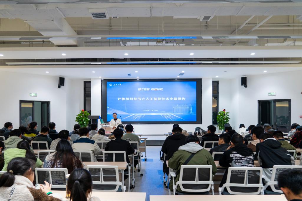 为深入贯彻落实国家创新驱动发展战略,引导青年科技人才锚定国家重大战略需求,促进产学研用深度融合,信息工程学院团委、计算机协会于2025年11月13日在北校区明德园创新大厦101报告厅举办大学生科技社团支持计划系列活动、计算机科技节系列活动之人工智能技术专题讲座,特邀西北工业大学计算机学院王鹏教授担任主讲。报告由学院党委副书记郭咏梅主持。