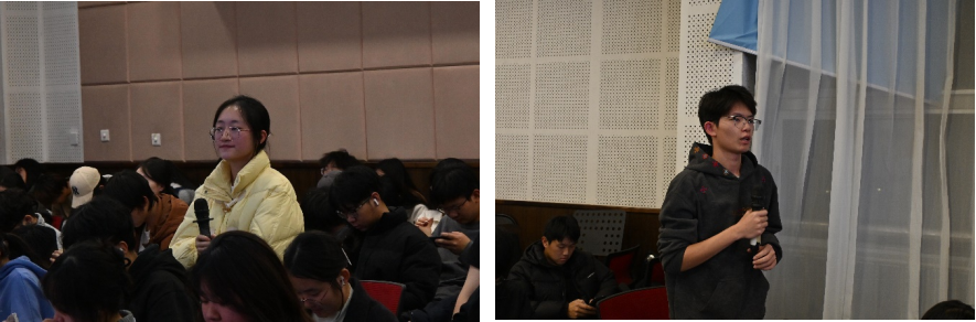 在互动交流环节,现场气氛活跃,同学们围绕“如何突破创业瓶颈”“学业与创业如何平衡”“实习与就业准备”等问题踊跃提问。王剑楠结合自身经历指出,创业不能仅凭一时热情,深厚的行业积累与市场理解至关重要。他建议同学们“先就业、再创业”,在实战中明确方向、储备能力。此外,他也鼓励大家根据个人兴趣与特长,科学规划发展路径,走出一条适合自己的成长之路。