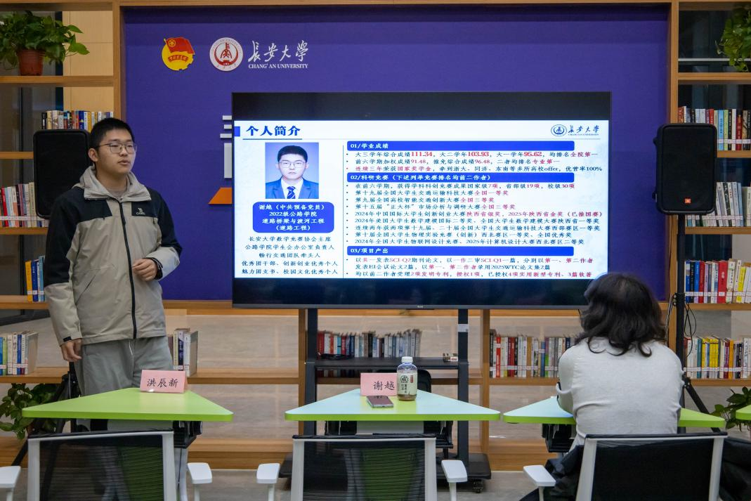 11月27日晚,由共青团长安大学委员会主办、长安大学青年传媒中心承办的“青年说”——优秀大学生青春故事分享会:“多维逐光而行,青春竞绽锋芒”主题活动在鸿渐园社区青年会客厅举行。公路学院2022级本科生谢越,信息工程学院2023级本科生洪辰新、2025级研究生徐悦,地质工程与测绘学院2022级本科生侯晓庆分享了他们在学业科研、学科竞赛、社会实践、志愿服务、文体发展等方面的成长历程与宝贵经验。活动由青年传媒中心董培鑫主持。