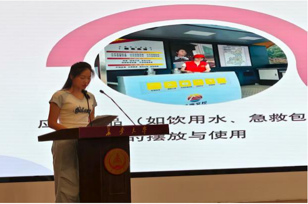 团队实践代表刘思娅同学从项目背景、实施过程、实践成果、社会价值等方面系统介绍了团队的实践项目,通过详实的数据和丰富的图片资料展示了团队协作的力量与集体智慧的结晶,让在场师生直观感受到实践项目的意义与影响。