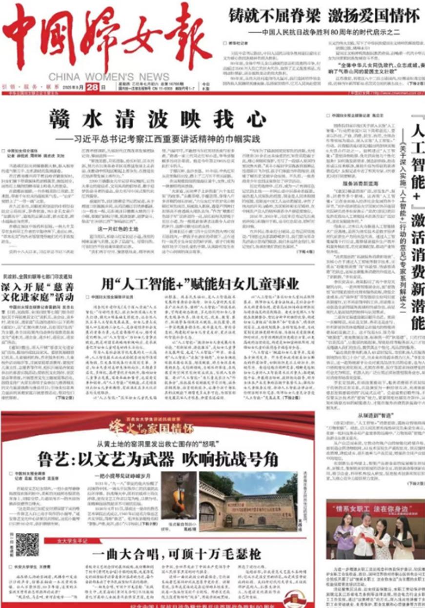 在纪念中国人民抗日战争暨世界反法西斯战争胜利80周年之际,我院组建“八秩回响寻烽火・青春誓言述初心”暑期社会实践队,积极参与中国妇女报社(全国妇联网络信息传播中心)发起的“百名女大学生讲述抗战烽火中的家国情怀”主题报道活动,赴陕西延安、韩城等地开展实地采访,沉浸式感悟烽火岁月的家国大义,录制系列视频讲述抗战故事,传递家国情怀,让红色记忆在青春视角下焕发时代光彩。4名学生的参访感悟分别在中国妇女报2025年8月19日、8月28日的头版要闻和9月4日“纪念中国人民抗日战争暨世界反法西斯战争胜利80周年”特刊刊出,讲述抗战故事的视频在中国妇女报客户端、中华全国妇女联合会官方公众平台、陕西省妇女联合会官方公众平台、学习强国、新浪网、网易网等多家媒体平台发布。