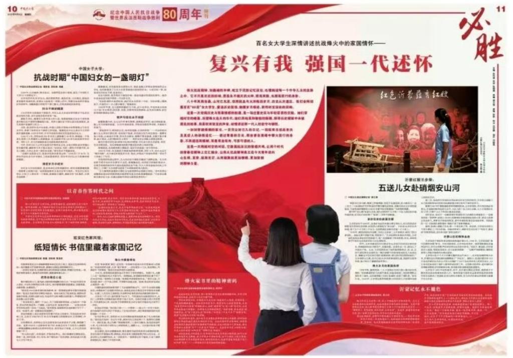 我们坚信,这份来自中国妇女报社的认可与勉励,将进一步激励广大青年自觉传承红色基因、坚定文化自信,把个人理想融入国家发展,以专业能力奉献社会,以青春之我书写复兴篇章。未来,学院将继续深化与各方合作,搭建更多实践育人平台,引导青年在重温历史中汲取力量,在新时代的长征路上勇毅前行,让抗战精神永续传承、家国情怀代代不息。