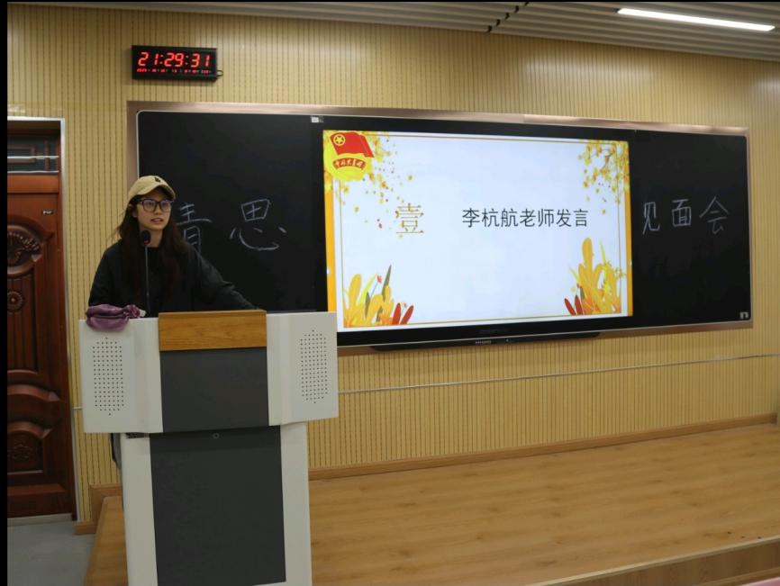 会议伊始,李杭航老师向新成员们致以热烈欢迎。她热情欢迎新成员加入,并回顾青思过往的成就。她结合组织特性,鼓励大家坚定信念、关注同学需求、精进业务能力、塑造优良作风,以昂扬的热情与积极的姿态投身于工作与学习之中。