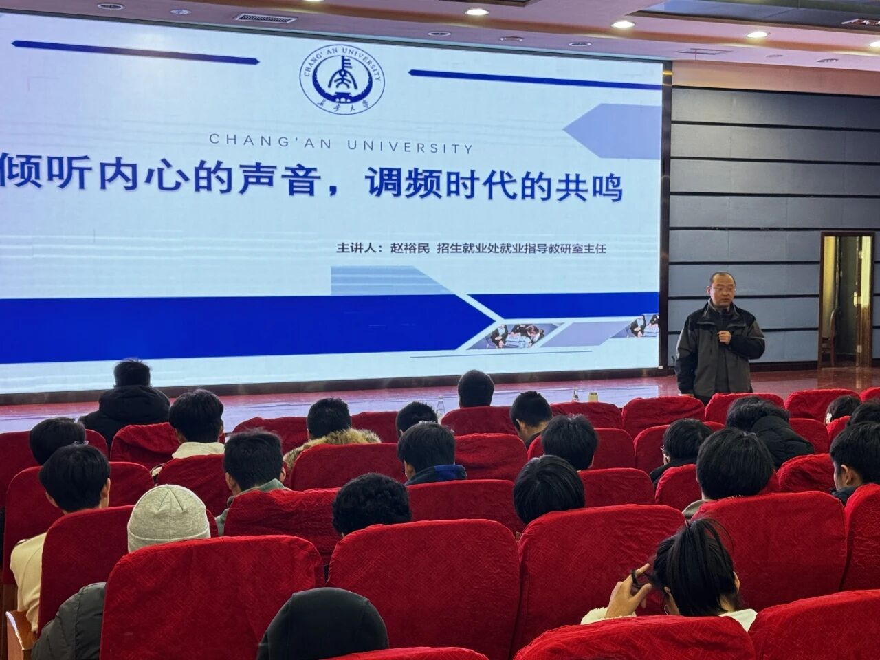 赵裕民以“倾听内心的声音 调频时代的共鸣”为主题,围绕“专业认知深度”“入学适应效度”等新生关切问题,结合当前高校毕业生就业市场趋势与行业发展动态,通过典型就业案例复盘、行业数据解读等方式,系统阐释职业生涯规划的核心逻辑、科学方法与实施路径。他着重强调,新时代大学生应突破传统专业局限,主动构建跨学科知识体系与思维模式,通过精准研判目标行业核心能力需求,量身定制个性化学习方案,实现大学阶段的高质量学习与能力进阶。针对大学四年成长周期,赵裕民进一步阐述各年级职业规划重点任务:大一适应与探索,筑牢学业基础、认知专业领域;大二定向与积累,聚焦能力培养、参与实践锻炼;大三深化与提升,深耕专业特长、对接行业需求;大四冲刺与发展,精准求职择业、实现职业启航,为新生搭建起兼具指导性与操作性的发展坐标。