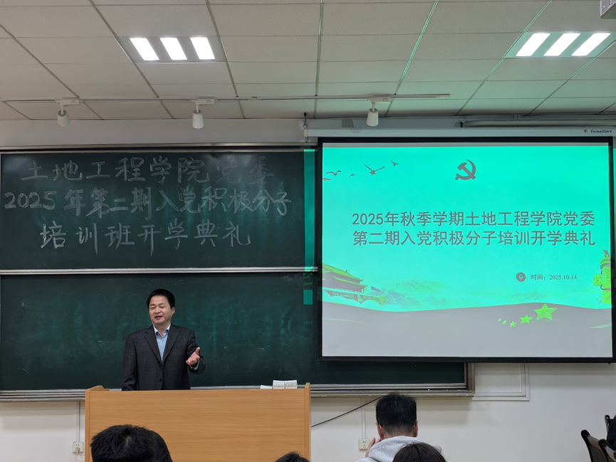 10月14日晚,学院第二期(2025年秋季学期)入党积极分子培训班开学典礼在南校区东院举行。学院党委书记李雪梅出席典礼并讲话,学院党委副书记、纪委书记孙翔洲主持典礼。学院学生工作办公室主任、团委书记陈阳,党委秘书孔令达,本期培训班班主任管泽楷及45名本科生和研究生学员参加典礼。