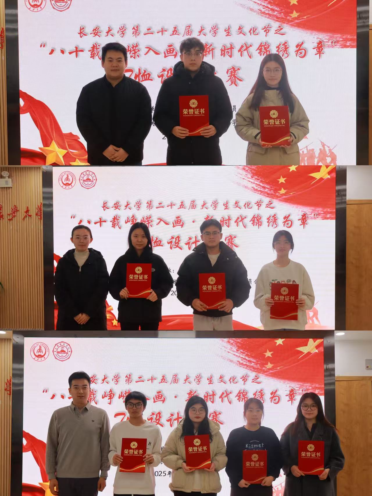经过激烈比拼角逐,最终作品《光影八十载,锦绣新征程》《峥嵘岁月,不忘初心》获一等奖,作品《一路长虹》《锦绣新章》《八十载峥嵘承新章》获二等奖,作品《长安风华,锦绣八十载》《新征程》《八秩铸华章》《八十载峥嵘,新时代锦绣》《八十载峥嵘岁月》获三等奖,作品《八十峥嵘,吾辈新章》获最佳人气奖。