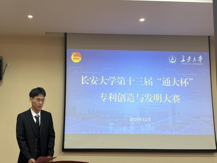 2025年12月11日,我校第十三届“通大杯”专利创造与发明大赛决赛在雁博园四楼研究生文化艺术活动中心会议室举办。校团委副书记常睿,学生创新创业实践中心主任金振广,西安通大专利代理有限责任公司副总经理任杰、资深代理人朱佳普、周一凡担任决赛评委。