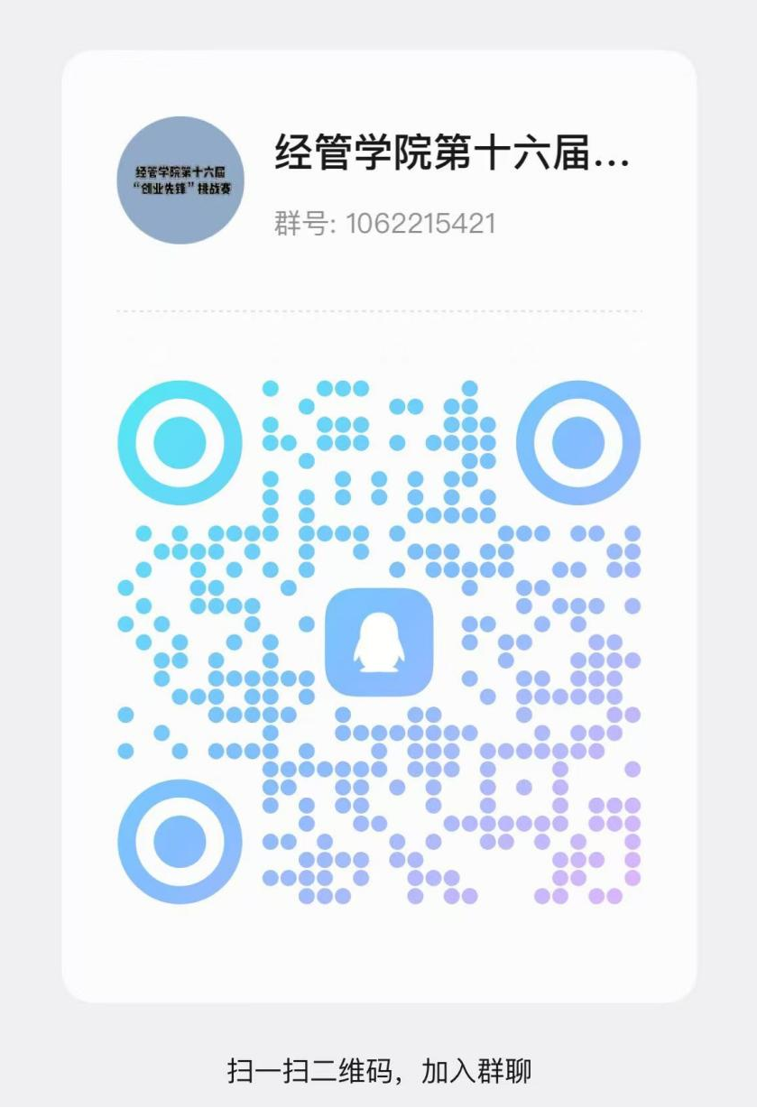 1. 参赛队伍加入经管学院第十六届“创业先锋”挑战赛初赛QQ群,群号:1062215421。后续将会在群内通知填写比赛信息收集表以及缴纳报名材料。