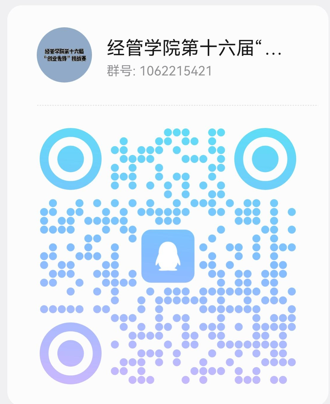 2.为增进参赛队员之间的沟通和交流,方便比赛相关事宜的通知,请各参赛队员加入“第十六届创业先锋挑战赛”交流QQ群(1062215421)。