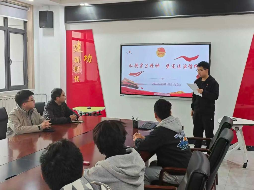 为引导同学们深入学习宪法知识,明确宪法与地下空间专业学习、日常生活的紧密联系,增强法治观念与维权能力,12月19日上午,2023210901班在公路学院党建活动室开展宪法主题教育班会。公路学院学生工作办公室主任卢毅、公路学院团委副书记李璟瑜、2023级本科生辅导员李明阳出席活动。