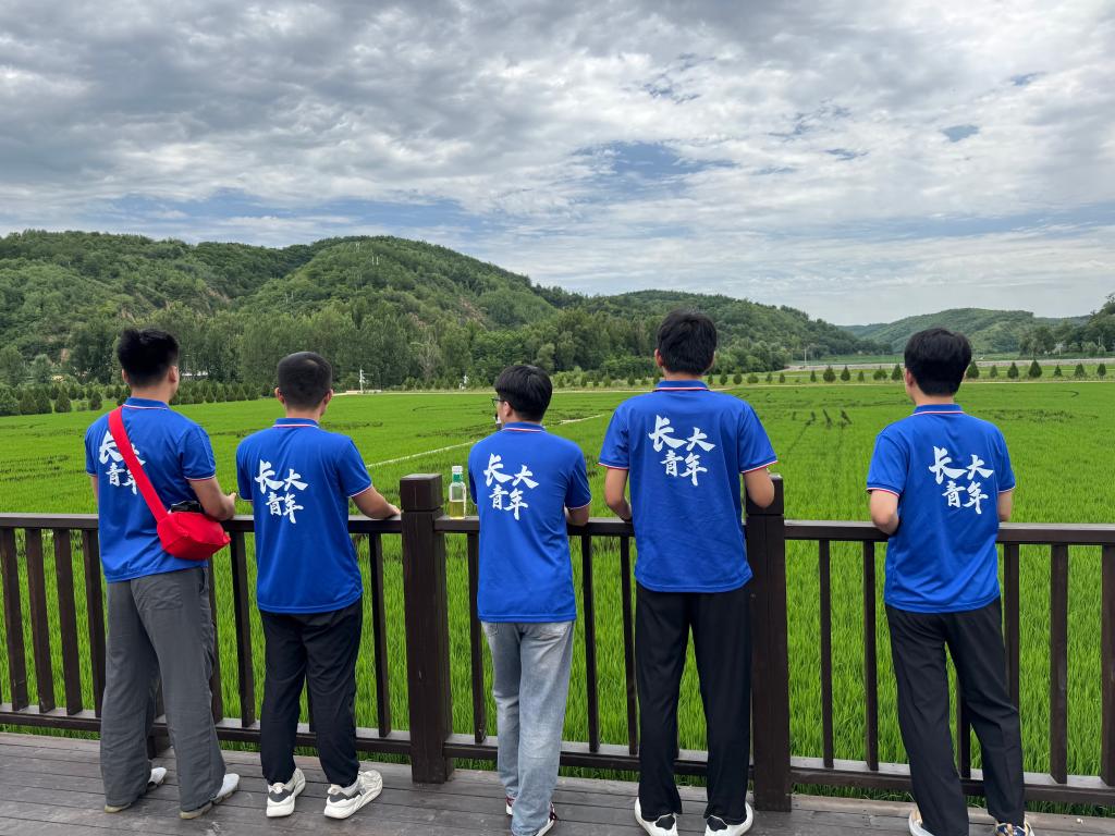 1941年春,三五九旅为尽快摆脱困境、打破敌人封锁开垦的泥潭沼泽,如今在现代化农业的发展下已演变为长势喜人的千亩稻田,实践队员们走入稻田间的田垄,看着眼前已经部分挂穗、郁郁葱葱的水稻,队员们谈到:“我从来没想到陕北居然还能种水稻”“这稻田长得真好啊,那个年代这么好的水稻算是最好的革命物资了吧”……在讨论中又深刻感受到了开垦泥沼,大力生产的伟大奉献精神。
