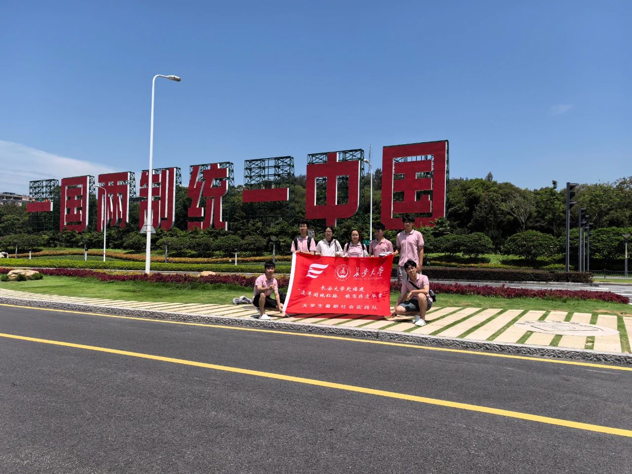 实践队来到“一国两制”沙滩,面朝金门、矗立着巨型“一国两制 统一中国”标语,阳光下熠熠生辉,气势磅礴。实践队员凝视对岸,不由感悟“革命先辈们抛头颅、洒热血,所求的不仅是民族的独立解放,更是国家的繁荣富强和完全统一。”胡佳瑞结合此次参观,为队员们上了一场生动的主题党课。她提到,“一国两制”方针是是解决历史遗留问题的最佳方案,充分体现了原则坚定性和策略灵活性的高度统一,是革命精神在新时代的继承与发展。“一国两制”沙滩正是向世界宣告中国人民维护国家主权和领土完整的坚定意志,以及追求祖国完全统一的共同心愿。