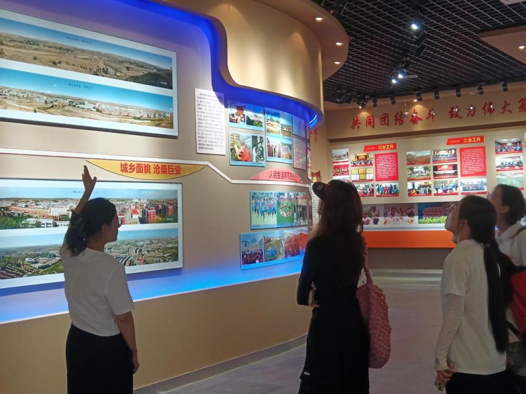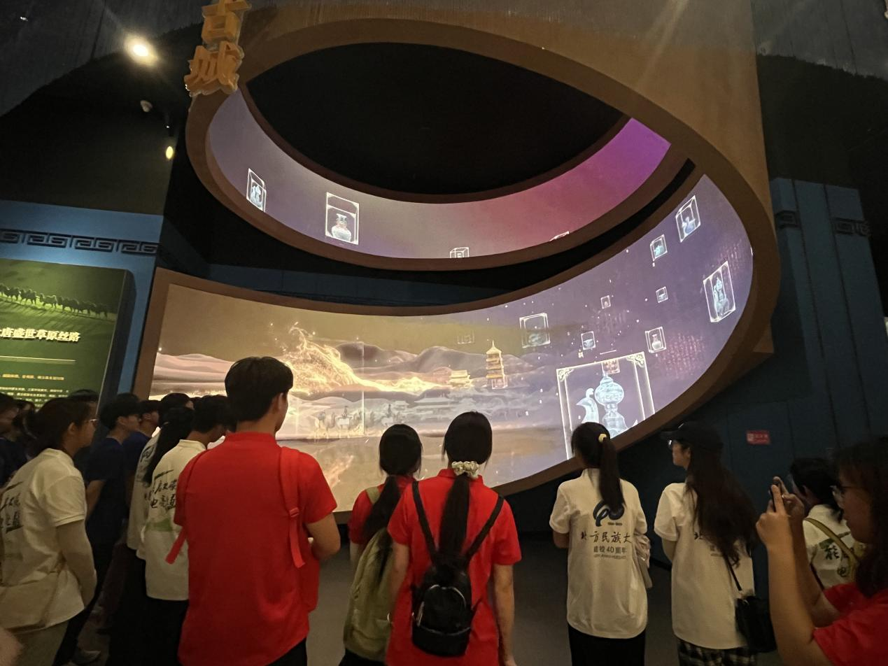 为学习民族团结进步事业实践经验,铸牢中华民族共同体意识,实践团队来到鄂尔多斯文化产业园,重点参观铸牢中华民族共同体意识展览馆。展馆通过丰富的实物、影像资料和互动体验,生动展现了鄂尔多斯各民族交往交流交融,共同缔造、发展、巩固、统一伟大祖国的历史。实践队员跟随讲解员的专业讲解,深入了解当地民族团结进步事业的发展历程。通过此次学习,团队成员们深刻领会民族团结是关乎“国家统一、边疆稳定、经济繁荣、社会和谐”的国之大者,理解了“各民族像石榴籽一样紧紧抱在一起”的重要意义,更明确了作为青年学子在维护民族团结、促进共同繁荣中肩负的责任。