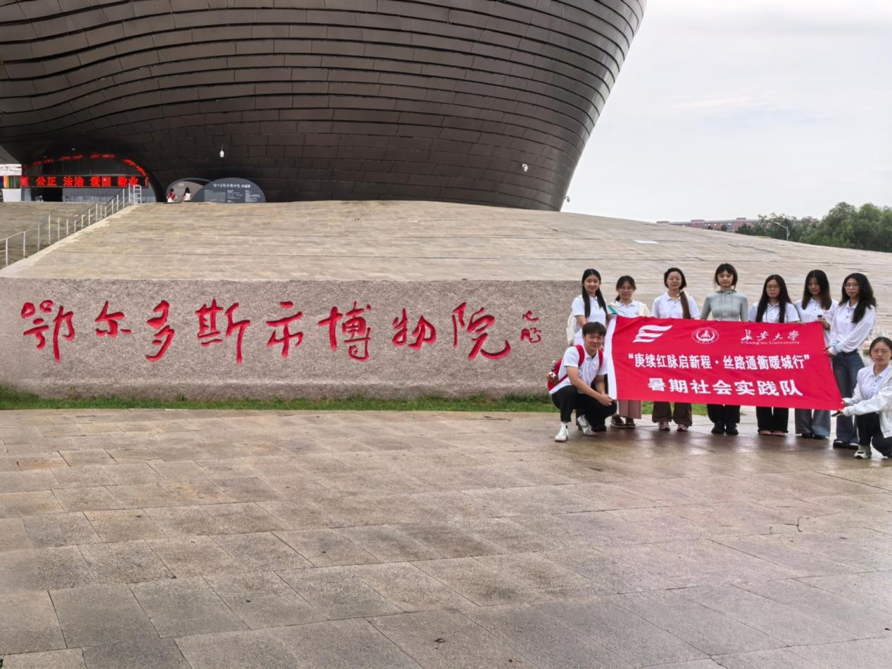 为深入学习贯彻习近平新时代中国特色社会主义思想,传承红色基因,感悟丝路文化,7月19日,在指导老师徐永超、李杭航的带领下,长安大学经管学院赴内蒙古自治区鄂尔多斯市“赓续红脉启新程·丝路通衢暖城行”暑期社会实践圆满结束。实践团通过走访红色教育基地、博物馆、能源转型典范企业及文化产业园等地,深入探寻当地红色历史脉络、绿色发展实践与民族文化融合历程,在实践中传承红色基因,感悟时代发展。