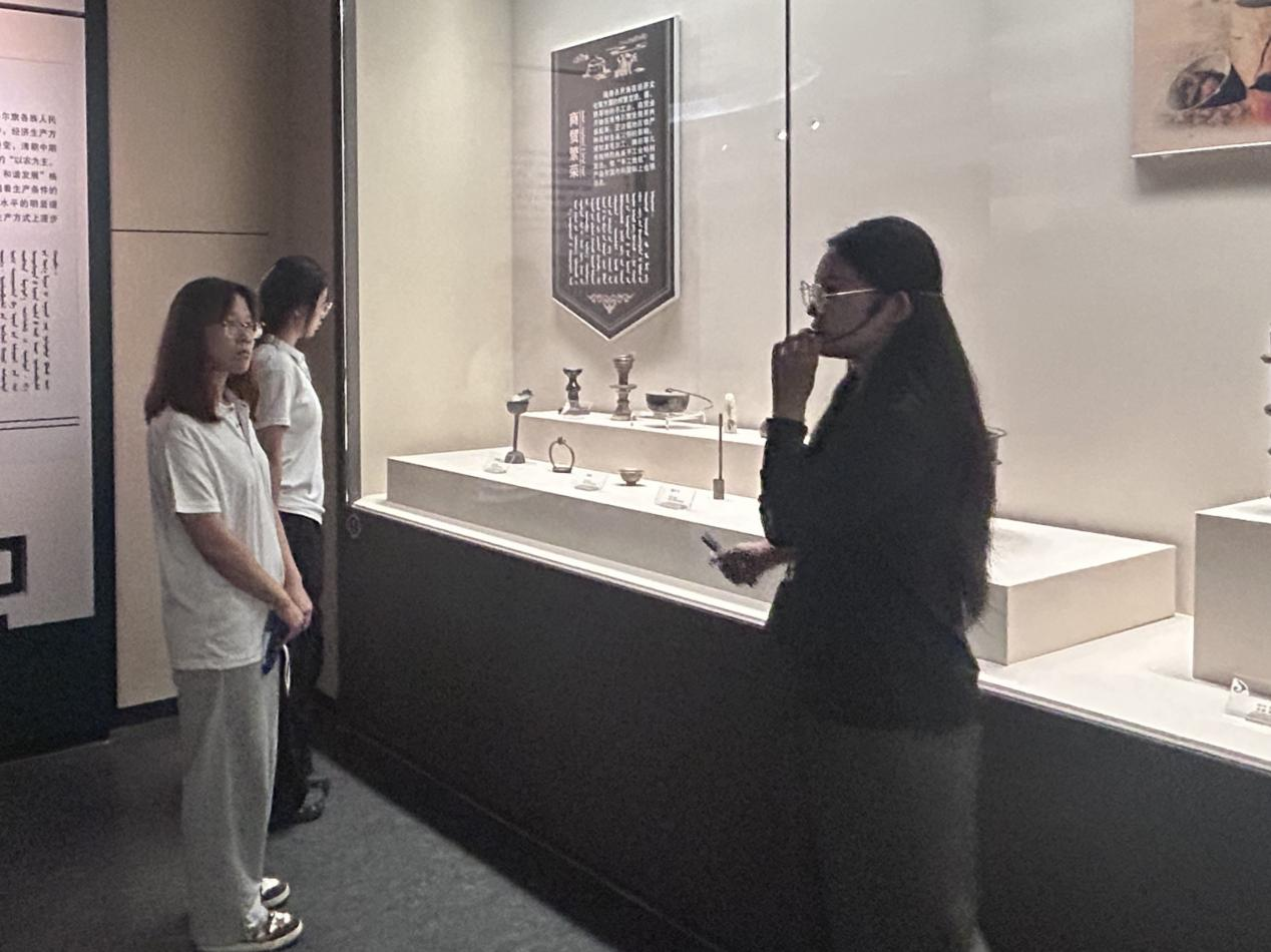 为系统了解地方历史文化,感受地域发展脉络,实践团队前往准格尔旗博物馆进行参观学习。馆内展品丰富,时间跨度从远古至近代,包含石器、青铜器、陶瓷器等珍贵文物。展览结合历史文献与场景复原,全方位展现了准格尔旗的地理变迁、民族迁徙与文化融合历程。在讲解员的带领下,团队成员深入了解了当地深厚的文化历史底蕴,对各民族在历史长河中相互依存、共同发展的历程有了更清晰的认识。