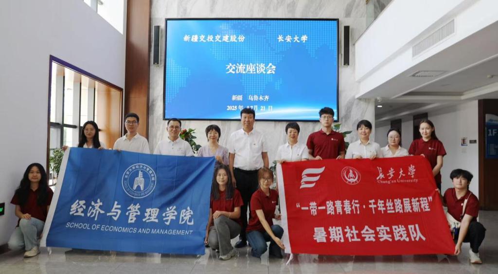 新疆交通建设股份有限公司紧紧把握国家“一带一路”倡议机遇,将“人才强企、科技兴企”作为战略核心,争做区域交通建设的引领者,打造丝绸之路经济带的基建标杆。实践队走访新疆交通建设股份有限公司,在长安大学校友李悦的细致讲解中,参观了公司文化展厅,并观看企业宣传片与科技宣传片,系统了解了新疆交建的企业发展历程与科技创新脉络,深刻感悟“功崇惟志,业广惟勤”的企业精神内涵。随后,双方围绕“深化校企合作、共促人才培养与交通行业发展”进行座谈交流,将高校智力注入企业实践,为新疆交通建设事业高质量发展凝聚校企合力。