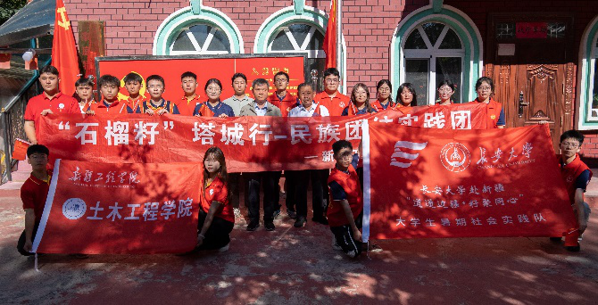 习近平总书记多次强调,民族团结是我国各族人民的生命线,中华民族共同体意识是民族团结之本。为深化民族团结进步教育,不断巩固中华民族共同体思想基础,促进各民族在中华民族大家庭中像石榴籽一样紧紧抱在一起,共同建设伟大祖国,共同创造美好生活,7月14日,长安大学“道通边疆·籽聚同心”实践队携手新疆工程学院土木工程学院,走进塔城沙勒克江·依明家庭爱国主义教育基地,以一场特殊的升旗仪式开启铸牢中华民族共同体意识的实践篇章。