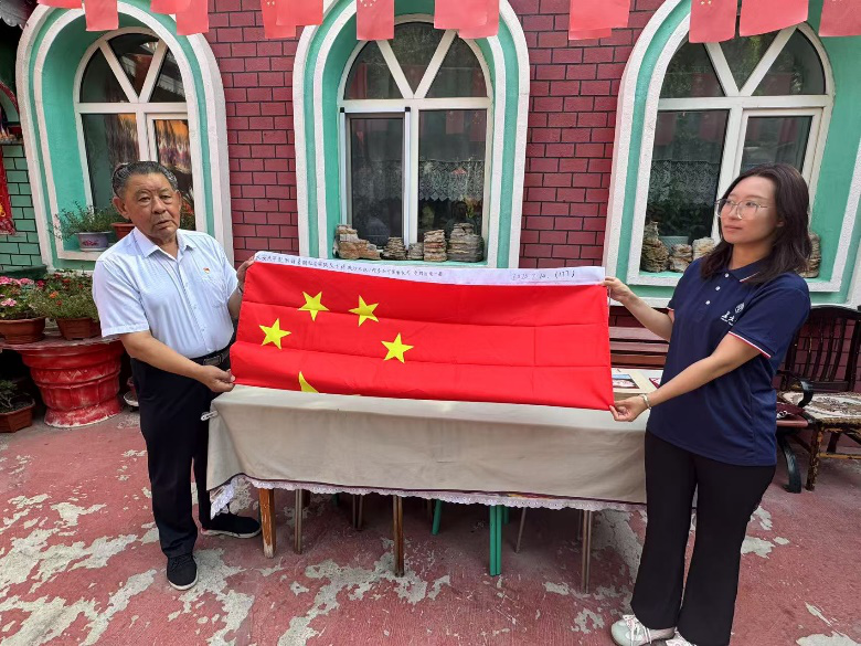 “爷爷,您坚持升旗的动力是什么?”面对队员提问,沙勒克江·依明目光坚定:“是解放军的恩情,是这片土地的养育,更是看到年轻人愿意接过爱国火炬的欣慰。”沙勒克江・依明向实践队赠予小院升起的第一百七十七面国旗。他叮嘱道:“你们是国家的未来,要把民族团结的种子种在心里,让各民族像一家人一样团结奋斗,共同建设伟大祖国。”