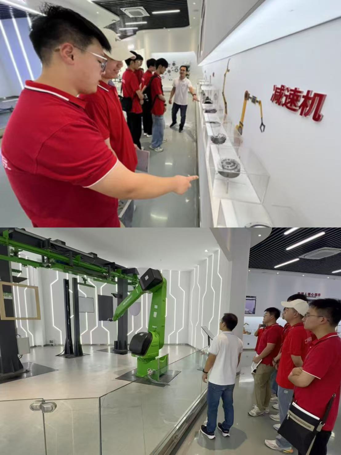 实践队在埃夫特智能机器人有限公司调研合影及在技术展厅观摩机器人发展历程