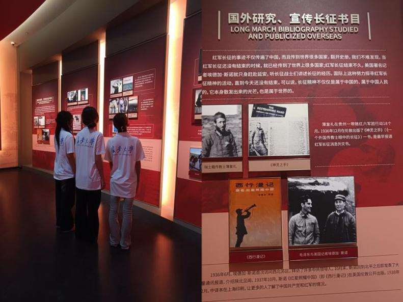 中央红军长征胜利纪念园中,实践队员们从瑞金出发时的离别信物见证信仰启程,学习湘江战役、四渡赤水、飞夺泸定桥等重要历史事件,充分认识到斗争的残酷性,老一辈无产阶级革命家的不屈精神,以及红军战士的革命乐观主义精神,深刻体悟“三军过后尽开颜”的艰辛与不易。