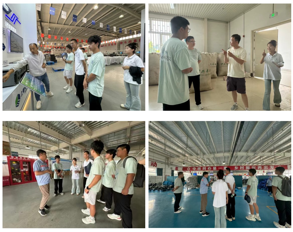 团队队员走进宁夏工业产业园区,先后调研走访上能电气(宁夏)有限公司、伊兴羊绒有限公司、中核(宁夏)同心防护科技有限公司等。在上能电气生产车间,负责人向团队成员介绍公司的发展历程、业务范围、生产流程和核心产品等,并指出光伏逆变器和储能变流器的高端装备制造作为新型清洁能源装备,已经成为当地光伏产业升级和社会民生改善的“新引擎”。中核(宁夏)同心防护科技有限公司是宁夏县对口帮扶企业,厂长带领团队成员介绍核辐射防护、劳动安全防护、专业服的研发、设计、生产和销售等生产流程,强调公司通过产业帮扶、技能培训、文化教育等综合帮扶体系,直接带动就业400余人,助力民族地区群众就业减贫。踏入伊兴羊绒有限公司,车间马主任带领团队成员参观羊绒收购、运输、清洗、加工等生产环节,见证羊绒从羊毛到成品的蜕变,通过开展村企合作和结对帮扶,不断拓宽就业岗位,帮助村民在家门口就能实现灵活就业。