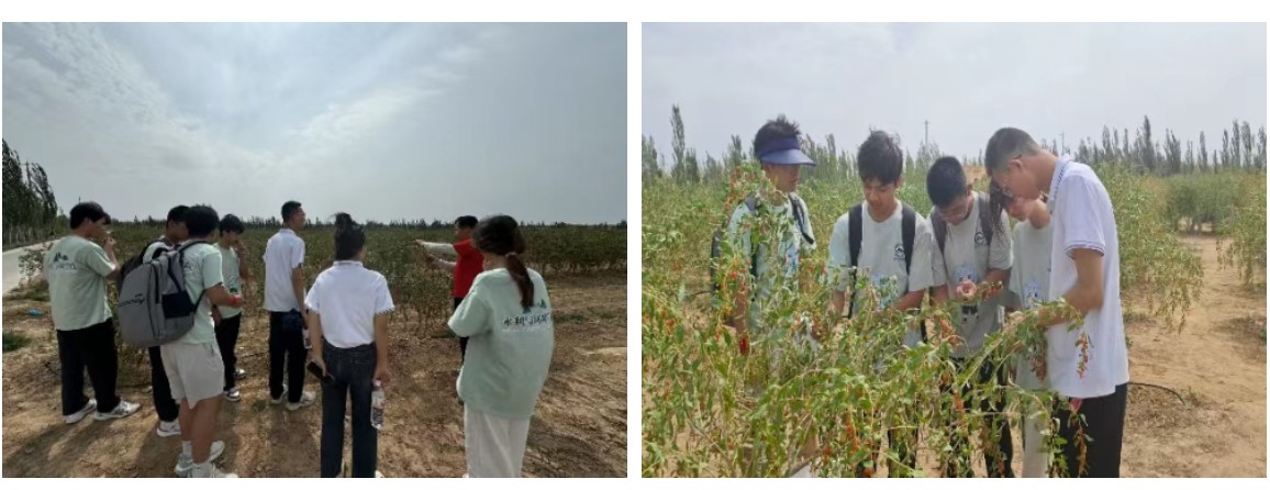 踏入宁夏菊花台庄园枸杞种植基地,队员们在工作人员的引导下了解到,基地严格遵循有机种植标准,通过滴灌节水、水肥一体化技术,搭配生物有机肥及性诱剂、粘虫板等科学手段,从源头筑牢品质防线。实践队队员们实地参观了种植区域,还亲身体验了枸杞采摘,在与工作人员的交流中,详细了解到枸杞从采摘、清洗、烘干到分级、包装的全加工流程,对产业链各环节有了直观认识。据介绍,依托枸杞种植与加工产业,该基地及合作企业不仅通过直播等方式宣传推介当地枸杞,扩大产品知名度,更常年为周边村民提供稳定就业岗位,让村民在家门口就能实现务工增收。这种“企业带动产业、产业联结乡村”的模式,将产业发展的活力持续注入乡村振兴,既夯实了特色产业根基,也为村民铺就了通往生活富裕的坚实路径。