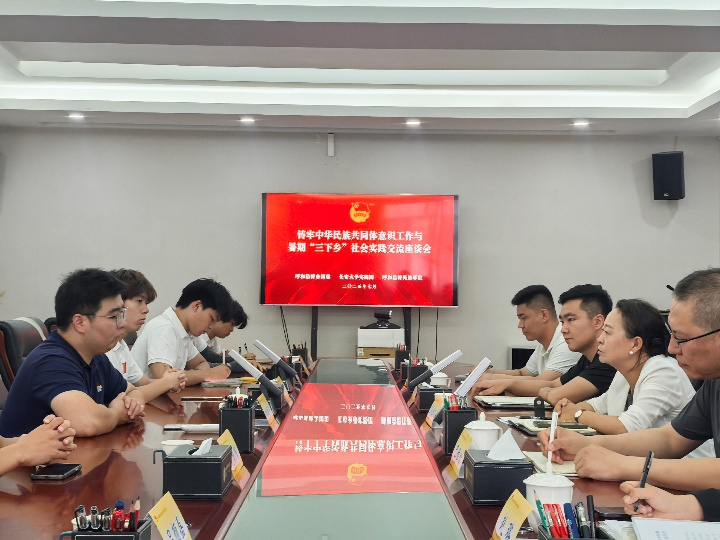 随后,实践队与呼和浩特市团委工作人员、呼和浩特民族学院校团委工作人员进行座谈交流。双方围绕社会实践相关工作进行深入交流,结合内蒙古地区民族体育特色与高校体育育人经验,探讨通过体育赛事、传统运动项目推广的典型案例和经验做法,搭建体育在促进民族团结交流平台的具体路径。