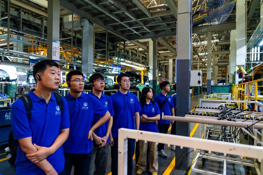 实践队深入智能化总装车间核心区域,沉浸式学习无人仓储与自动配送系统的高效协同模式,见证自动生产输送系统与工业机器人精准完成装配作业的震撼场景。在总装的直观体验,不仅让大家近距离触摸到智能制造的前沿技术与先进管理理念,更有效拓宽了专业视野,深化了对现代工程体系的认知,为未来投身相关领域的学习研究与实践创新奠定了坚实基础。