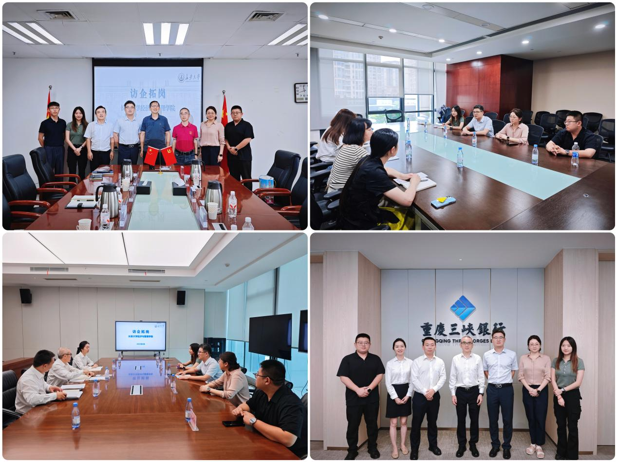 8月6日,学院赴渝深化产教融合,精准对接区域人才需求。学院一行与重庆高速集团校友代表就产教融合深化路径开展对话,共探校企资源协同新机制,凸显校友资源协同效能。下午,学院代表与重庆地产集团人力资源部主任刘音梦等集团代表探讨高层次人才引进与博士后流动站建设,企业方提出城市更新领域专业人才需求,为博士培养方案优化提供实践依据。在重庆三峡银行走访阶段,通过实地走访与座谈交流,聚焦复合型人才能力维度建设,围绕课程体系创新与实践教学强化展开机制化探讨,为拓展产教融合新空间创造有利条件。