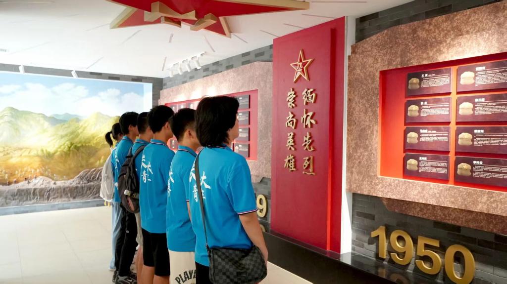 结束公益列车体验,实践队来到宝天铁路英烈纪念馆。该纪念馆作为全国铁路系统重要的爱国主义教育基地,记载着为修建宝天铁路而英勇献身的铁道兵与铁路职工的丰功伟绩。实践队队员步入纪念馆展厅,在锈迹斑斑的工具、磨损的工装和泛黄的笔记前驻足凝望,深刻认识到宝天铁路不仅是西北交通干线,更是用生命与热血铸就的“钢铁长城”,凝聚着一代人的理想与牺牲。