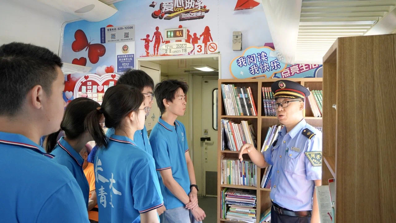 在服务农户的同时,6063次列车还承担了“爱心助学车”的功能,为秦岭深处的孩子们提供便利。车厢内专门开设的图书角和宽敞的学习区域,让孩子们能在乘车途中安心读书、写作业。列车长介绍,许多学生每周搭乘这趟车往返家校,因此铁路部门特意优化设施,营造温馨的学习环境,这份对教育的支持,让“慢火车”不仅是交通工具,更成为照亮求学路的“移动课堂”。社会实践团队借此开展了“书香伴旅途”公益活动,为列车上的小朋友们讲解绘本故事,带领他们共读经典名著。