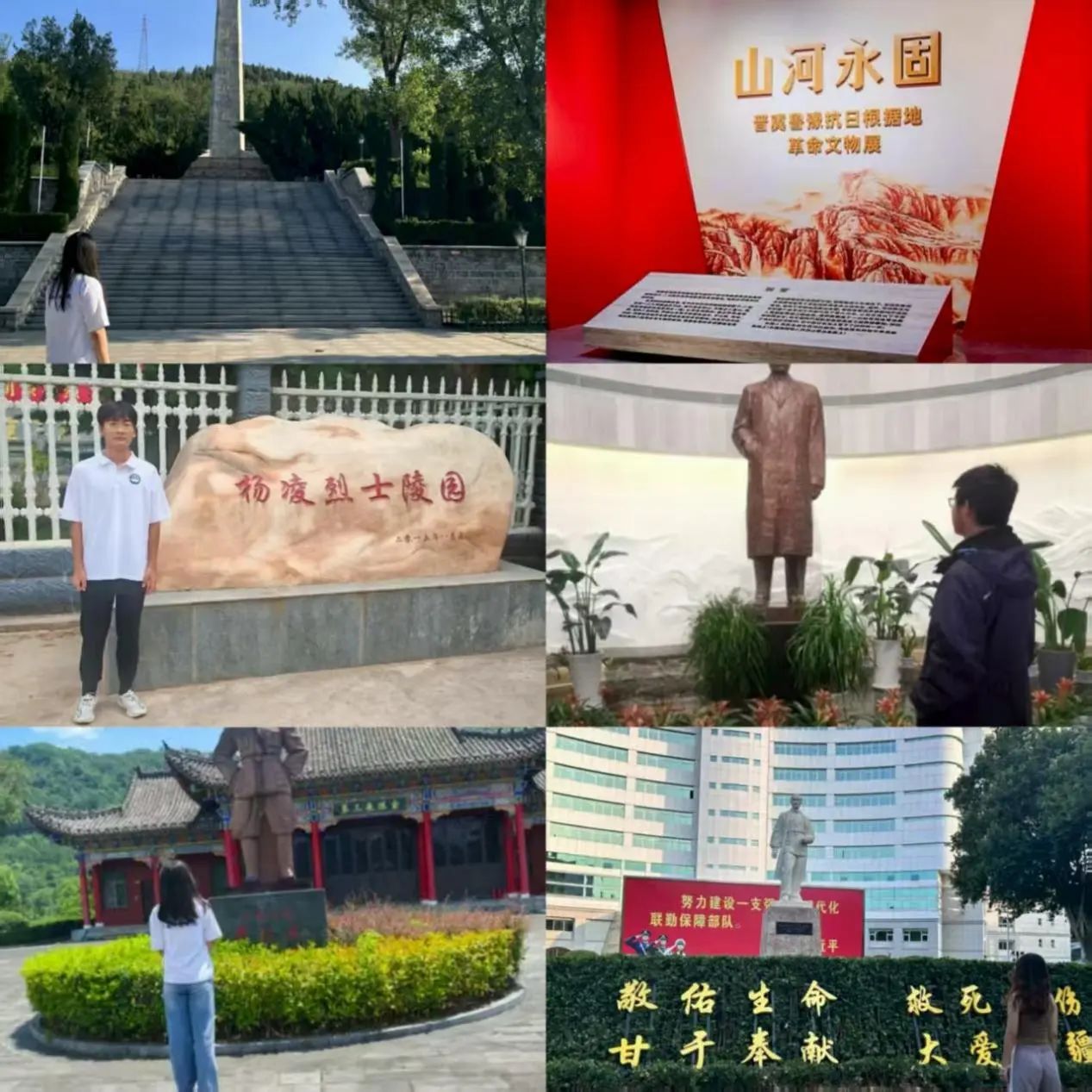 7 月 12 日至 15 日,实践队员沿着革命先辈的战斗轨迹,先后走进西安八路军办事处、八路军东渡黄河旧址及纪念碑、八路军太行纪念馆、太原双塔烈士陵园等红色地标。在西安八路军办事处,斑驳的旧址与珍贵的史料交相辉映,队员们深切体会到革命战士以热血铸就抗战防线的民族气节;站在黄河之畔的东渡旧址,1937 年三万将士挥师东进的壮举仿佛就在眼前,让人为之震撼;八路军太行纪念馆的六大展区内,千余件文献实物与生动的场景复原,系统铺展了抗战历史长卷,太行精神的坚韧内核在此清晰可感;而在太原双塔烈士陵园,队员们躬身擦拭抗战烈士墓碑,于静默中聆听英烈精神的回响 —— 这片浸润着赤诚与牺牲的土地,让每个人接受了深刻的信仰洗礼,更将这份震撼转化为奋进新征程的不竭动力。