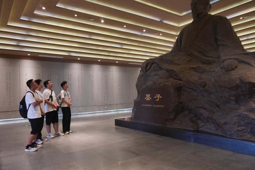 7月13日上午,实践队首先抵达墨子纪念馆。在墨子纪念馆内,队员们通过丰富的文物展品、详实的文献资料及生动的多媒体展示,全方位探寻墨子的精神世界与历史贡献。