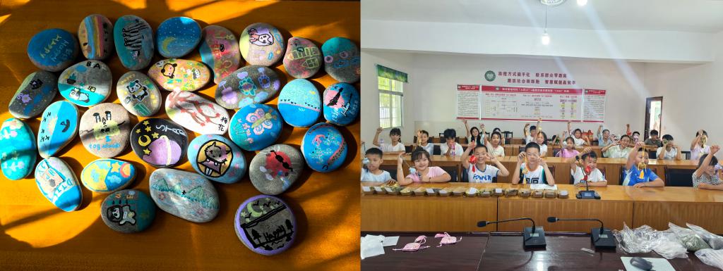 非遗香囊课使学生感受到传统民俗魅力,直观认知香囊文化内涵;黏土课让学生在创作中理解甲骨文的文化价值和现实意义;元音音标课以趣味互动方式,调动学生积极性,帮助学生掌握发音要领;趣味地理课通过活动教学生认识中国省级行政区划,激发学生对各地的兴趣;历史趣味课以有趣内容带领小朋友探索历史知识;绘画课提供石头画板,使孩子们完成了富有想象力和创造力的石头画;“掌中生火”实验激发了孩子们对科学的好奇,播下知识火种,让科学变得触手可及。