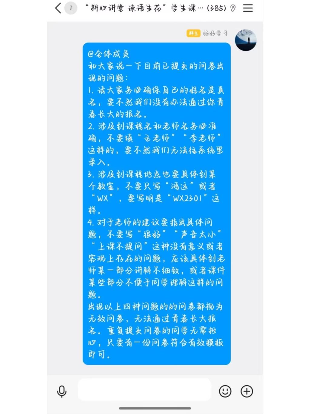 活动筹备阶段,长安大学问学社成员精心设计了教学反馈问卷,通过“青春长大”二课平台进行广泛宣传,同学们积极加入活动群聊,了解活动内容。活动期间,同学们根据日常上课、学习情况,认真填写问卷,积极建言献策。经过问学社成员的细致筛选,最终共评选通过了336名同学的教学建议,包括老师课堂进度问题、课件内容安排问题、授课方式问题等方面。“耕心讲堂 谏语生花”学生教学建议征集活动自2023年开始举办,已持续开展33次建议征集活动,累计评选出有效教学建议6万余条,并全部反馈至学校质量保障系统,成为学生帮助学校提升教育教学水平的关键一环。