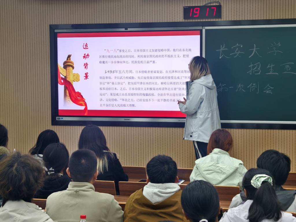 2025年11月15日,长安大学招生宣传协会的“铭记历史,砥砺前行——纪念‘一二·九’学生爱国运动90周年”团日活动在渭水校区wx2107教室成功举办。本次活动由共青团长安大学委员会主办,长安大学青年素质拓展中心、长安大学招生宣传协会承办,学校招生办公室副主任马皓轩担任指导老师。