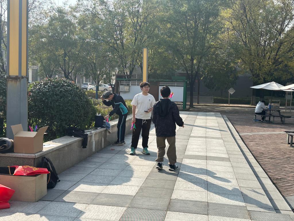 活动共有两种参与形式,既可以参加踢毽子比赛,对一分钟内踢毽子的个数进行排名,排名靠前者有奖品发放。也可选择场地内任一传统文化相关活动(空竹,健身龙等)进行体验,完成任意一项可获得书签一张。活动伊始,两种形式同步进行,比赛区由现场工作人员负责计数,保证比赛公平。随后,体验区为参与者提供活动空间,营造沉浸式氛围。活动全程有序,最终圆满结束,同学们在活动完后带着奖品满意离开。