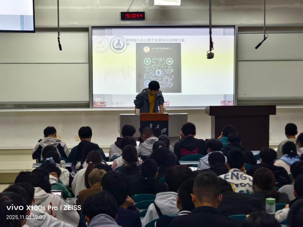 为帮助同学们更好地备战期中考试,夯实数学基础知识,由“大学生科技社团支持计划”支持的期中复习课程于2025年10月31日至11月2日顺利开展。本次复习课程活动由共青团长安大学委员会主办,长安大学青年素质拓展中心、长安大学数学竞赛协会承办。薛宏智担任指导老师。