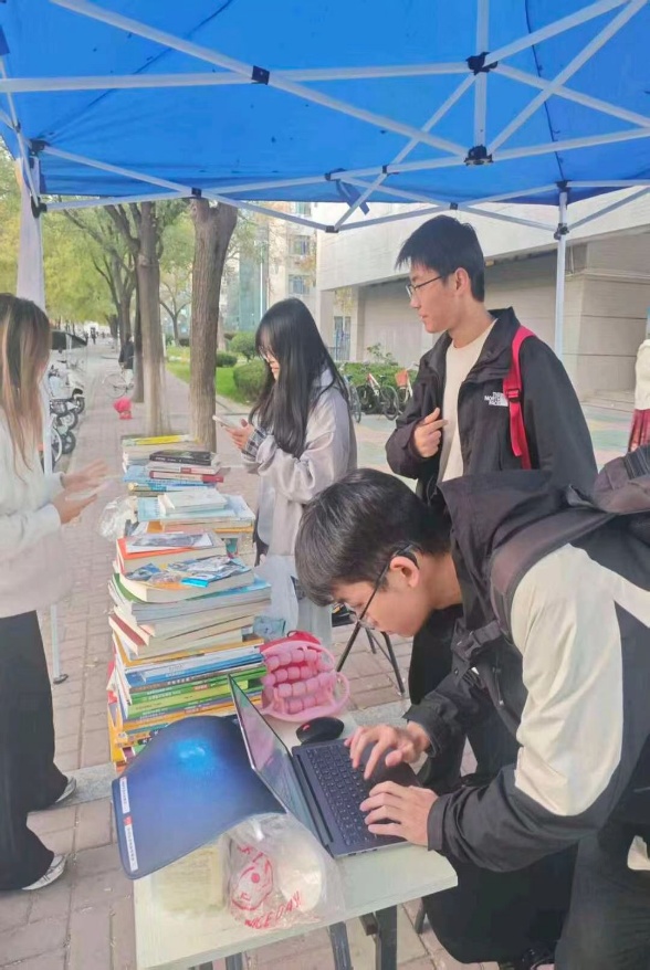 活动前期,志愿者们提前一周通过官方账号发布海报并推送活动预告,众多同学积极响应,提前整理好闲置的书籍和文具,静待活动当天前来捐赠。活动伊始,树蕙园广场的帐篷刚搭建完毕,便有同学怀抱一摞书籍匆匆而至。志愿者们一边引导大家登记捐赠物品,一边协助分类整理,现场逐渐排起长队,不少路过的同学也被这热闹的氛围感染,临时取来旧物参与捐赠。最后,志愿者们细致地打包好所有捐赠物品,计划将其送往周边乡村学校和社区公益驿站。至此,本次公益活动圆满结束。